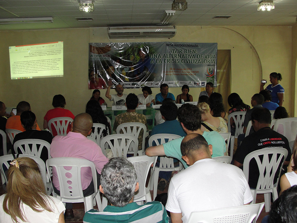 El Instituto para el Desarrollo Rural de Sudamérica (IPDRS) moderó la citada Mesa sobre el Buen Vivir, abriendo la serie de mesas autogestionadas del Foro y compartió con un centenar de instituciones y organizaciones sociales y aproximadamente mil asistentes de Bolivia, Brasil, Colombia, Ecuador, Guayana, Guayana Francesa, Perú, Surinam y Venezuela.