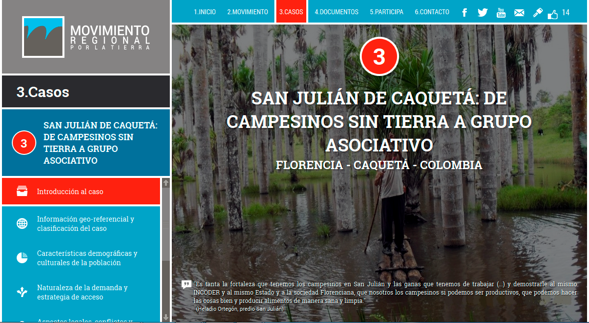 De los cinco casos sistematizados, la información del caso denominado San Julián de Caquetá, ya se encuentra disponible en la plataforma virtual del Movimiento www.porlatierra.org, los cuatro restantes se encuentran en proceso de revisión y serán publicados próximamente.