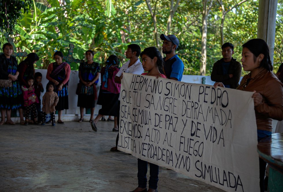 La comunidad mexicana de Pantelhó condena el asesinato de Simón Pedro Pérez. El activista había pedido la intervención de las autoridades por el auge de desplazados por la violencia. Foto: Carlos López / Agencia EFE